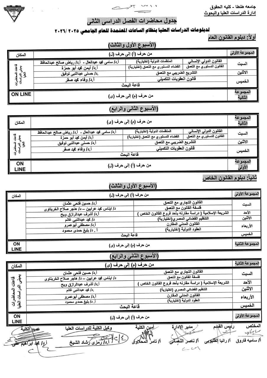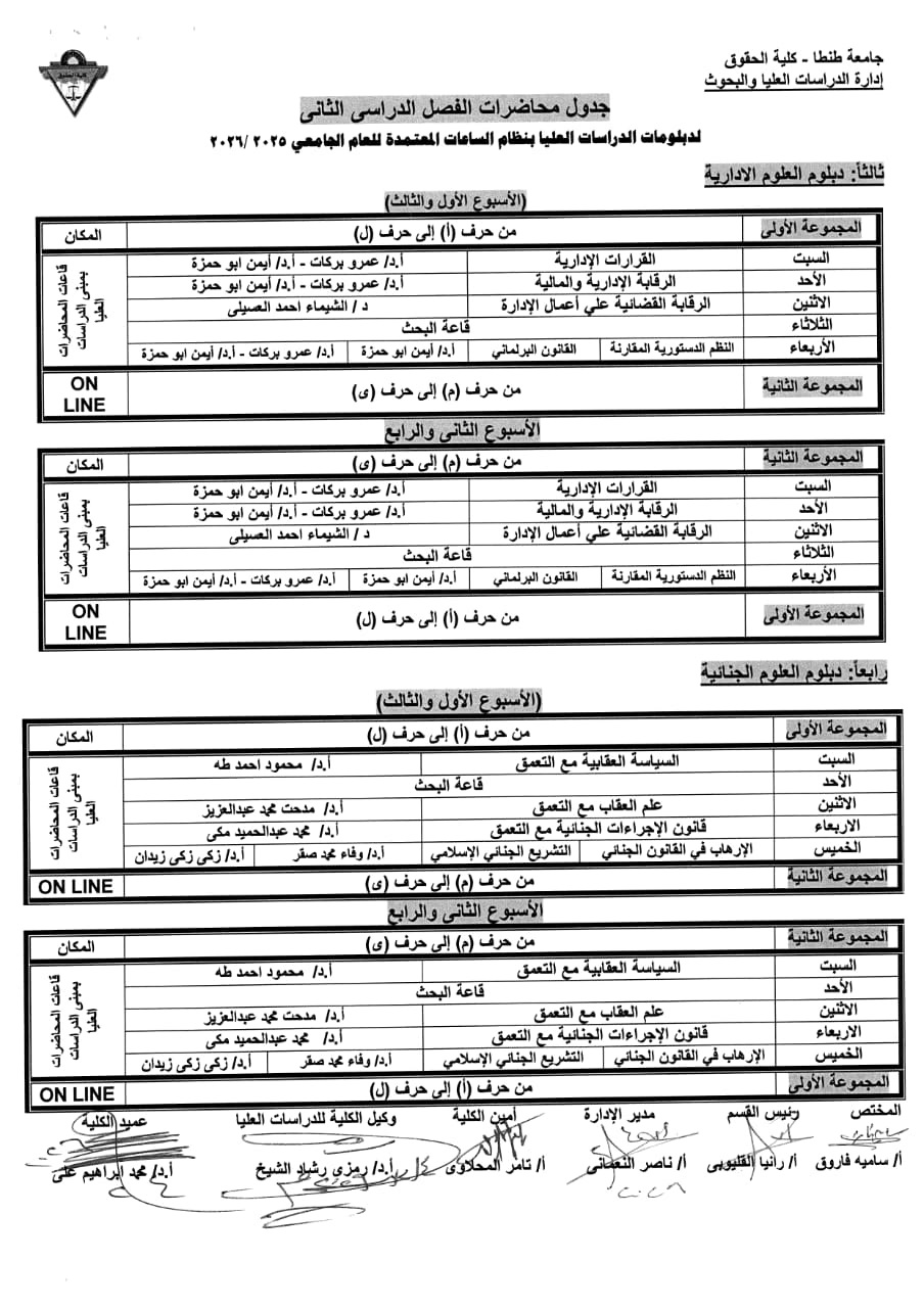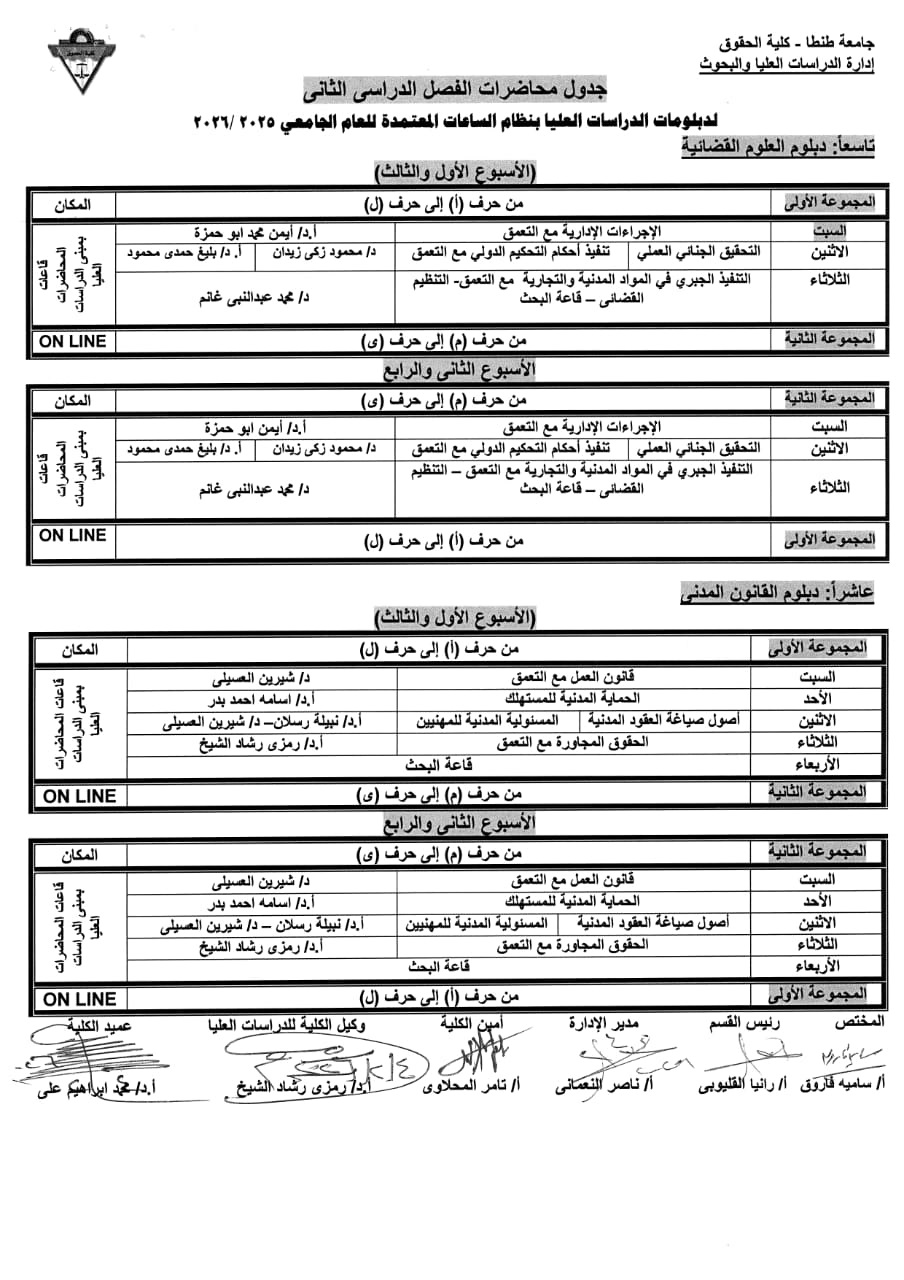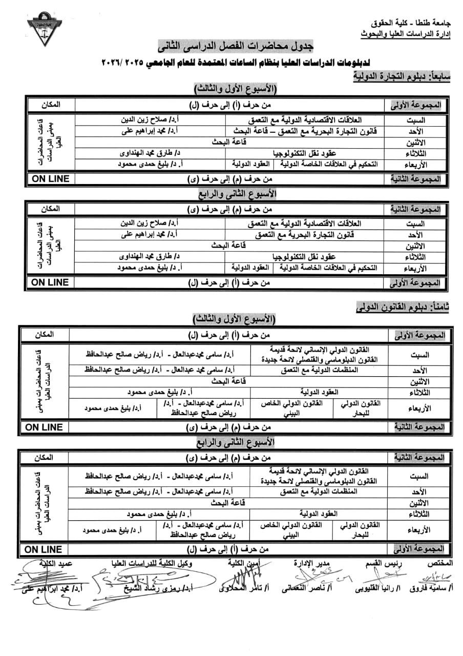 جدول محاضرات الدراسات العليا